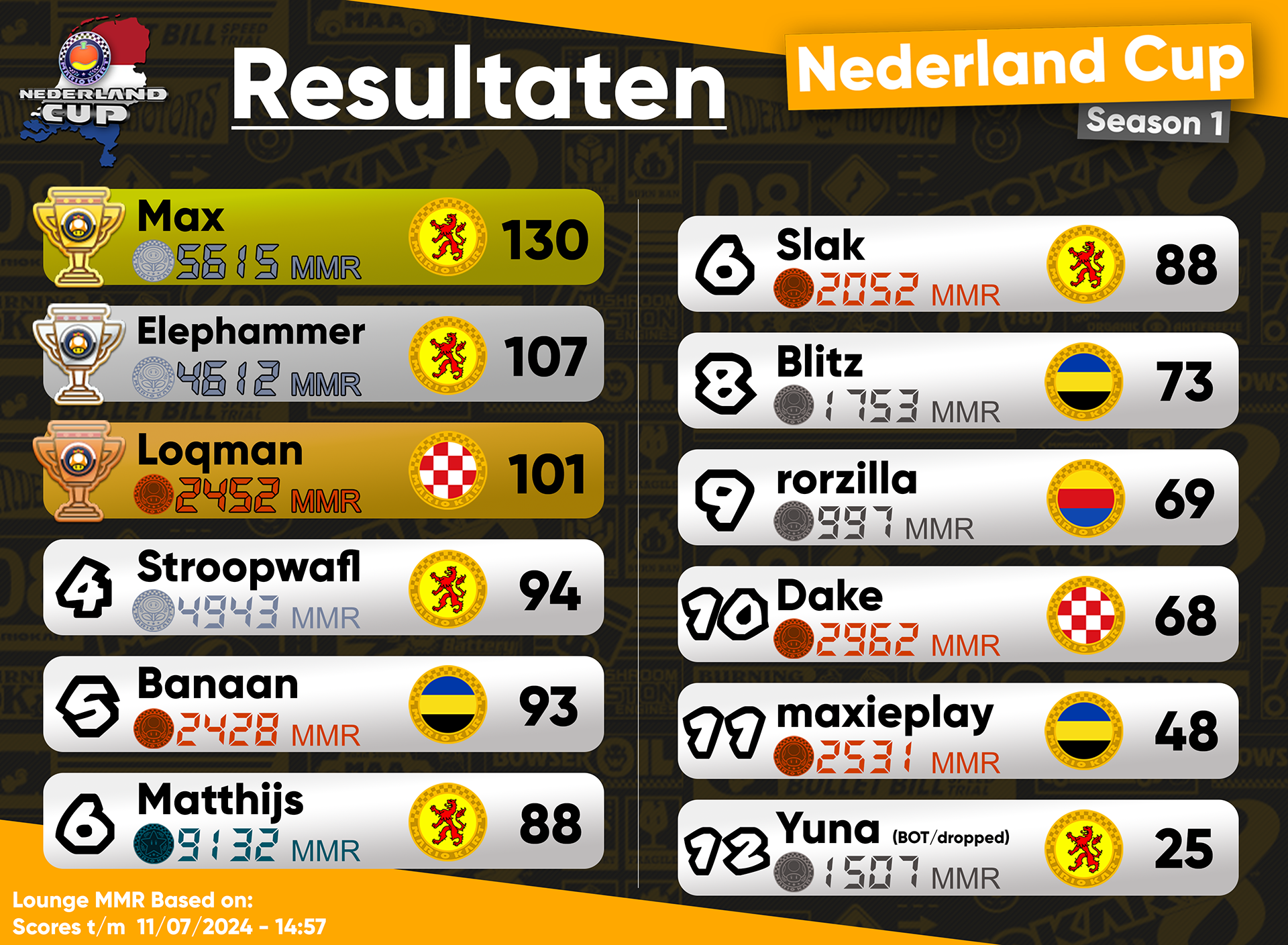 De server en website zijn momenteel met een pauze in verband met de release van de nieuwe Mario Kart game: Mario Kart World. Er was veel chaos voor de release met veel mening verschil en we zullen voorlopig eventjes stil zijn in de server tot dit is opgelost.